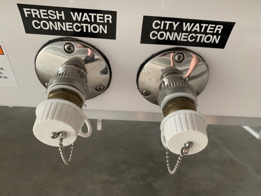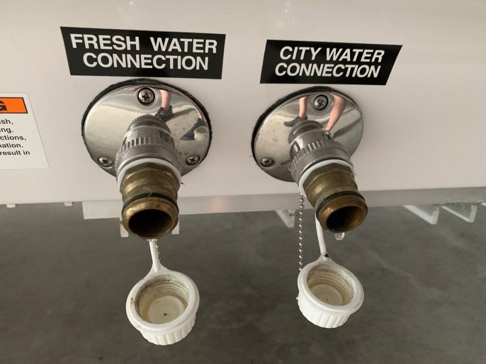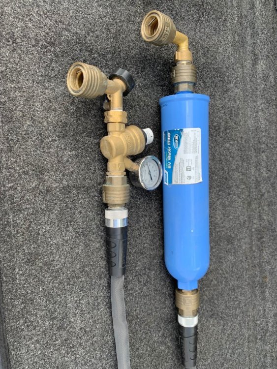 I bought this Eley Quick Connect System product for all hose connections in my setups. Think one-handed operation! The components. Water pressure regulator and filter configuration. Eley installed at Oliver water inlets. Protective caps in place, utilized chain hardware from original stock caps Caps purchased. -