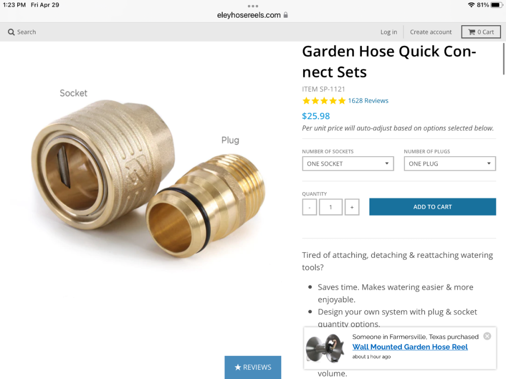 No doubt, as well as Amazon. However these Eley connectors are commercial grade, made with quality materials to ensure longevity and safe drinking water, of bigger overall size for a full 3/4” unobstructed flow, have serviceable o-rings and a 10-year warranty! You definitely get what you pay for IMO. That said, I also have been very pleased with several of the Gorilla Easy Connect hose terminal ball valves/couplers/nozzles, which I will share with if anyone is interested. -