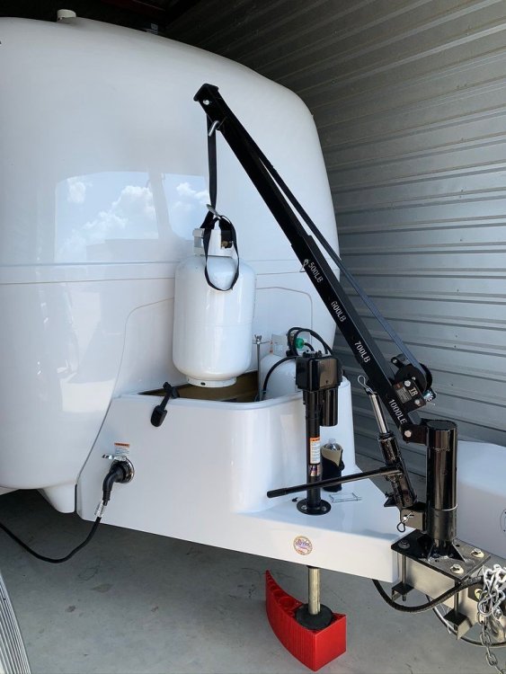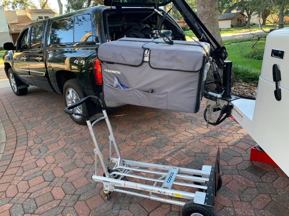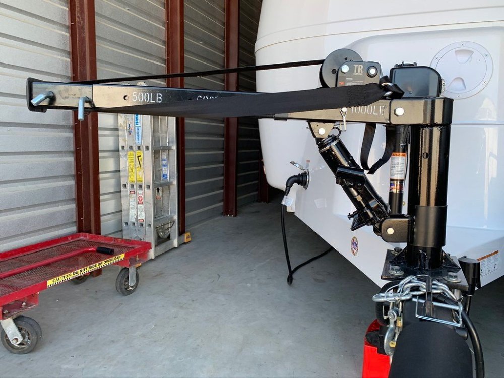 2. The hoist is a real back saver, use it to load the generator, as well as the Dometic completely loaded and full 30# propane tanks. The ‘truck crane’ is marketed for a truck bed installation, but I modified it to mount on the tongue of the Oliver. I also added a strap winch for enhanced performance which involved some fabrication. The Anderson under the front stabilizer is a Rapid Jack put to good use!