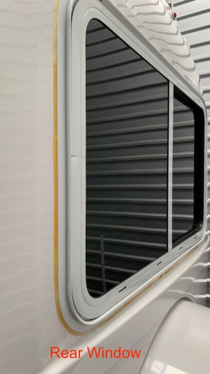 Two weeks ago I finally got around to installing the replacement rear window in my LE2. I had planned to do it after Christmas, but decided to wait until we had a warmer day (low 60's), thinking that the butyl tape that seals the window would compress more easily when tightening the self-tapping screws that hold the inner and outer window frames together. It was definitely a two-person job. The hardest part was to properly align the inner frame screw holes with the slot in the outer frame that the self-tapping screws penetrate. After placing the window assembly in the hull opening, I opened the sliding window so I could temporarily clamp the inner window frame in place while I fiddled with aligning the screw holes. When I was ready to install the self-tapping screws, my wife held the window assembly in place from the outside of the trailer so that I didn't push the window assembly out of the hull opening - the butyl tape would not have held the window assembly in place against the force needed to get the self-tapping screws started. I waited a few days before caulking around the outer window frame to let the butyl tape compress more. I was able to tighten some of the self-tapping screws a bit more, and could see that the gap between the outer window flange and the hull had decreased a bit. I removed the original caulk around all the other windows (caulk on rear street-side window had yellowed within three weeks of delivery) so that all the windows would have the same type and age of sealant. -