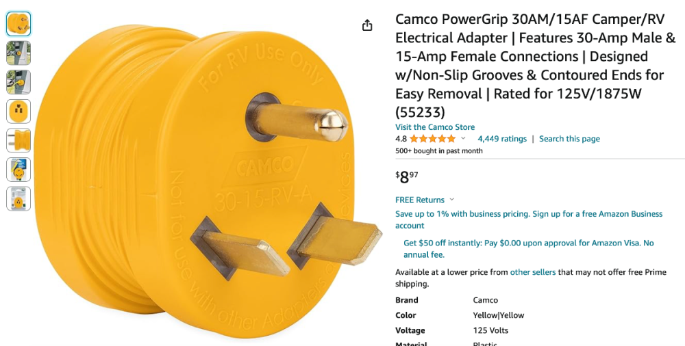 I have a 30A male to 15A female connector along with a home outlet circuit tester. These testers are much cheaper than the 30A tester, and I already had one. This allows me to check proper wiring at the 30A outlet in the pedestal before plugging in the trailer. In theory the inboard EMS does these tests, but why plug in if you already know the pole is incorrectly wired? I do not use an external EMS/protector. -