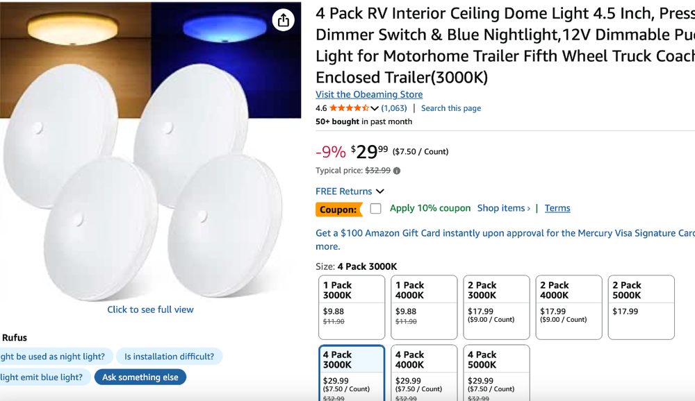 I had mine replaced last year when I went to the mothership for regular service. This is what I purchased. I had Oliver do the mounting since I was there anyway because I'm not super comfortable with drilling and screwing into fiberglass. They have a central mechanical button that is part of the cover. They are dimmable, have 3000K/4000K/5000K (selectable at purchase) temperature, and they have a blue mode for night lighting. When installing, the screw holes must be drilled perpendicular to the surface, or the cover mounting will not be perfectly flat, in which case the switch button will not reliably make proper contact with the switch itself. I did have to repair the screw installation since the Oliver tech didn't know this (neither did I), but now all five of them work properly first time every time. They're cheap enough that I bought a spare set, but their life is very long so a replacement will probably not be required during my time with the trailer. -