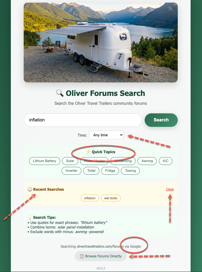 Here's my version 0.0.3, it should work fine with any browser. I did try to get Google to sort results by date, but it really does not work well. But there are some common google-approved "Time" filters from which you can choose. * Added quick Topics * Added Recent Searches which you can simply click on again We should be able to get this type of functionality embedded into the forums themselves, but not sure how well that will present as Google requires an API key and maybe $$ to rout the results back to your own web page. They like their own advertisements. Makes sense. This "should" run on any Operating system using a modern Web browser. I will not be able to test it on Windows, (pronounced & spelled "windoze" by a hard-core Linux/Unix SysAdmin, LOL), mostly out of principle. Microsoft is killing that Operating System with all their BS lately. Anywho... Squirrel! Download it, unzip it, and double click the HTML file and try searching something. During test, I've discovered many great topics which I have missed over the past couple years. Let me know how it goes. Tested on MacOS: Chrome, Edge, Safari Tested on Linux: Firefox, Chrome Screenshot: oliver-forum-search-v003b.zip -