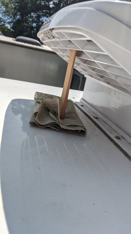 Yeah, I finally got on the roof to see what was what. I'll order the new part today. For now, a temporary prop will do. I'm full-timing for now, so I need the fan going. Thank you everyone for the details.