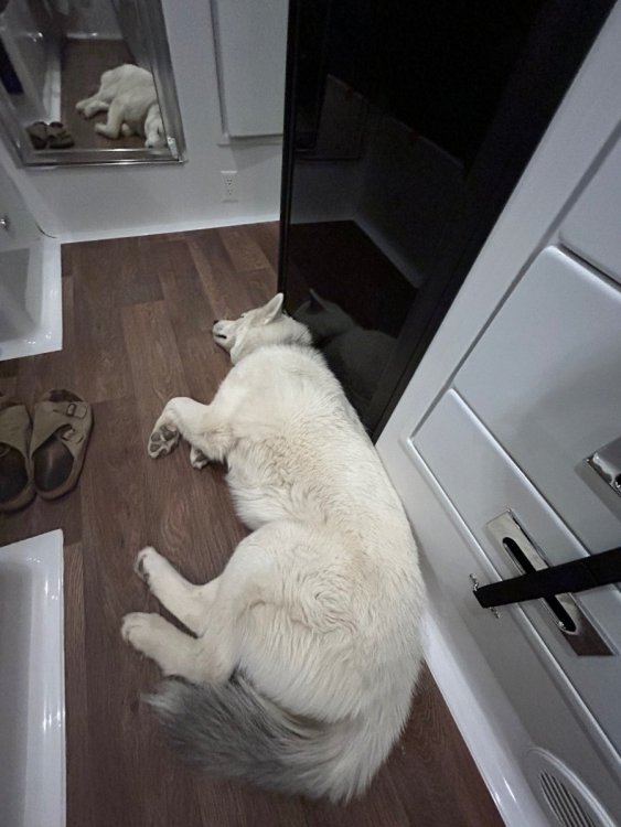 Great idea, Ollie-Haus! We take our "Fur-Baby" everywhere. Although we're new to the Ollie family, for sure - we've been able to transition 25+ years of RV'ing, backpacking, and general out-of-doors puppy practices/experience to make it work as comfortably as possible for Magnus in our OTT. We've met a ton of Fur-Baby RV'ers over the years with dogs, cats, dogs 'n cats, birds, pigs, and even a monkey! I'm thinking we pet-lovers all have many things in common, but in particular, an underlying theme: We tend to gravitate to RV'ing/camping because we can accommodate and have our pets during our road trips without the expense of a "Puppy Hotel" while being away. It may take a bit of pre-trip planning is all, right? FYI, here are some of the aspects we always consider: 1. What are the pet "Rules" at the destination(s) - are they even allowed?; 2. Pet food/water/treats, etc. - enough for the trip duration?; 3. Collar w/tracking device (we use Apple AirTags), campsite lanyard (20-foot), floatation vest (if needed), boots (if needed), 4. "Service Dog" vest, if so trained; 5. If other families are joining in a "caravan" - are their Fur-Babies compatible with ours? There's probably more than those listed above - but y'all get the idea.... Cute Story: We're camping in Flagstaff, AZ - Magnus is maybe 8-9 months old and we met an Irish couple there with their wolfhound that was the same age as ours. Check out the size difference! For us, our pets literally bring us so much happiness an fun that being without them on a trip seems like a foreign thought! Cheers/Woof! -