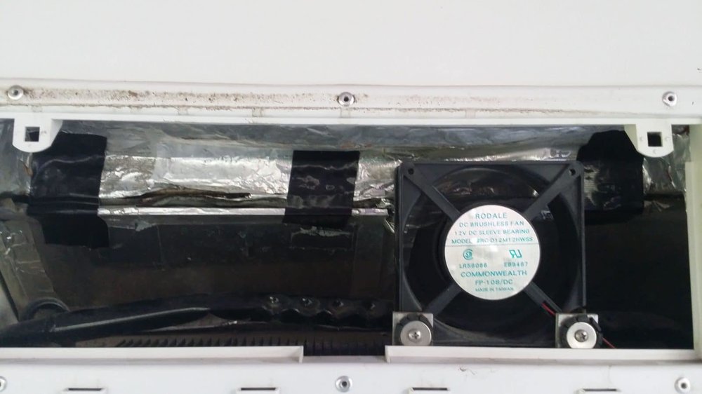 22. We have a mid-2015 Oliver LE II. The refrigerator fan compartment is lined with some type of silver insulation material that keeps falling down and hitting the fan. We've tried taping it back up, but as soon as warm weather hits and we have to run the fan, we find out it has fallen down again. Has anyone else experienced this problem and if so, what have you done to stop it from falling down? I should mention the factory used some type of silver tape, we used duct tape on the fly and now we have gorilla tape trying to hold it up. Nothing seems to work. Marsha