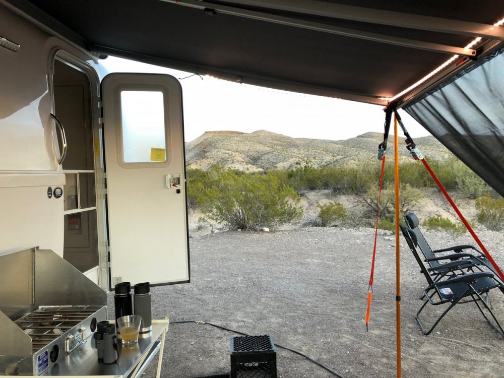 Those Carefree poles must be new - at least they weren't available back when I was looking. We've been using some REI tarp poles, which are extremely sturdy, but require a bit of hacking to make them work. I drilled a small hole in the bottom two corners of the awning housing and then I wrap ratchet straps over the extension arms to keep the awning from lifting off the poles. We've weathered some pretty big winds with that setup, and even a hailstorm. My ultimate plan was to thread the pin at the top of the poles, then install a grommet at the end of my ratchet straps - that way I could just slide the grommet over the pole, insert the pole in the awning, and secure it with a wing nut. That's never happened, and now that I know about that Carefree kit, I might just switch to that instead. Here's a photo of the setup - those ratchet straps are ridiculous, at a minimum I need to get something smaller and much less orange... -