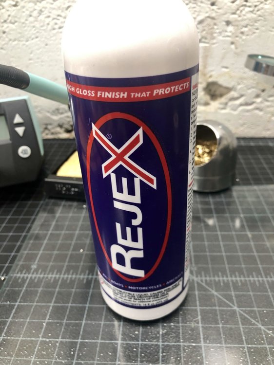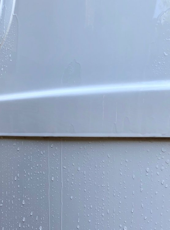 This is the bottle I bought - And here are the streaks and the weirdness with it holding onto water (rejex @ top and bare fiberglass below) - Maybe I got a bad bottle, maybe it needs to be applied under laboratory conditions, maybe it's snake oil. One of those three is true, and IMO it doesn't matter at all which one. There are dozens of other high quality and well recommended waxes out there that don't require a roll of the dice. I had really good luck with the Dura Gloss after I got burned with the rejex, but others have highly recommended the 3M marine waxes, as well as others. The last thing you want to do after spending two days waxing your trailer is to spend two more doing it again. I still haven't gotten around to rewaxing my truck, and it still gets black streaks every time it rains.