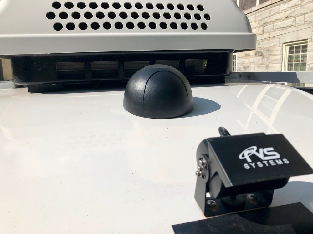 The dome is the antenna. It’s about 5” in diameter I guess. I noticed that they have a different version now on their website that’s a bit lower profile. The 4 small antennae that come with the router are maybe 4” or 5” tall. I’d have to find the box to be sure. The thing forward of the dome, or actually rearward, is our rear view camera. It’s a wired system from RVS. We really like it. We haven’t used the outside Wi-Fi feature yet, possibly because I just figured out it existed last week. I connected it to our Wi-Fi here at home just to see how it works. Like you I’m not sure how much we’ll use it on the road.