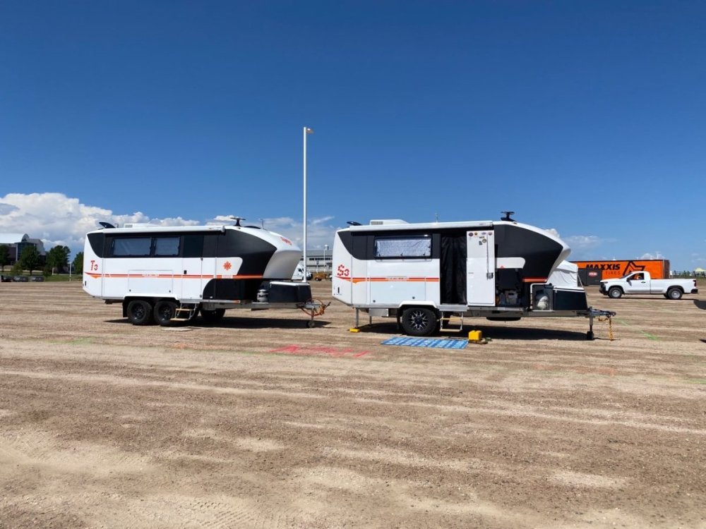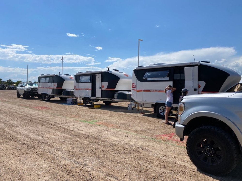 John, I’ll get some photos from other Kimberley owners and post them. Yes, it was extremely dusty. We spent a lot of time keeping our campers clean. My windows screens are still needing attention. Scott spent some time in my T3 and he also looked closely at the suspension and hitch. I think Oliver could produce a model with true off-road suspension and an off-road hitch. Also disk brakes. Based on my conversations with Scott, I think Oliver attracted many potential new customers. I’d be curious about actual sales resulting from the trip to the Expo. -