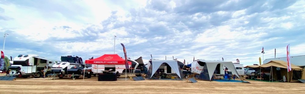Here are a few photos. The first two are photos of us setting up—you can see what the surface was like. The last shows the full Kimberley display. Oliver had the Elite II on display behind the Kimberley display. BTW, this was the first time Kimberley had all of its Kruisers, the Karavan and the Kamper on display in one place—they haven’t even done this in Australia! -