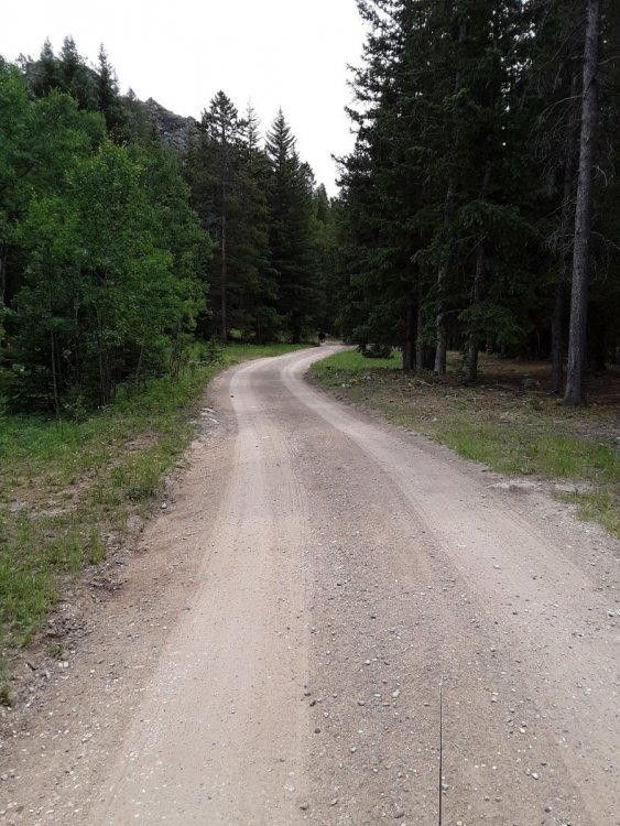 Earlier during the trip I was walking back to the Ollie. Mind you that this is big time bear country (I always carry bear spray and a fairly large side arm) and well up the road I saw movement of what I thought was black fur. Indeed, it was and it wasn't.