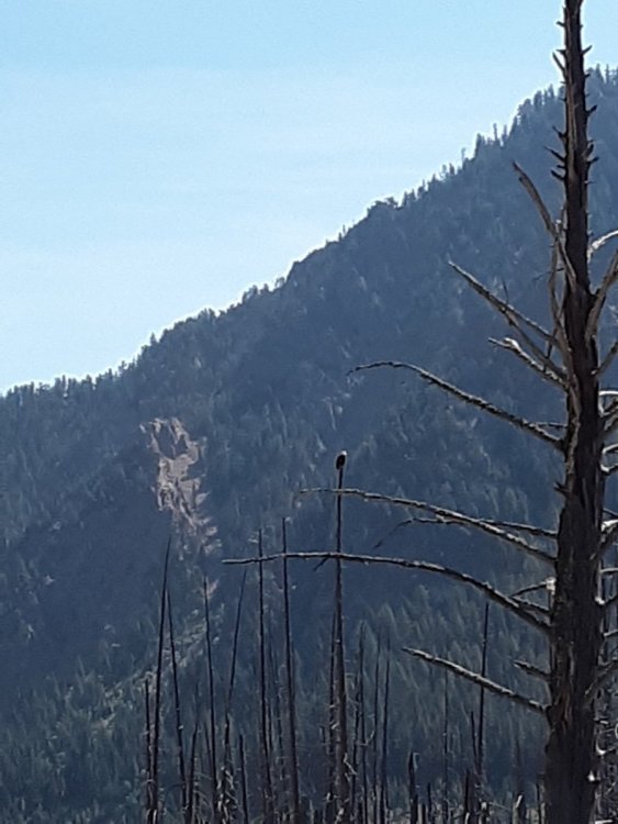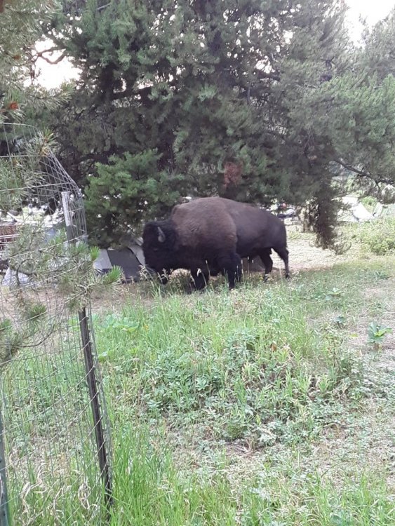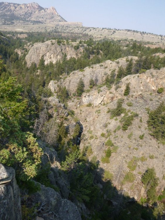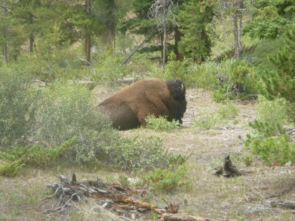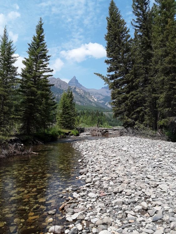 While there was a bunch of haze due to the fires and some slight eye irritation, I never did actually "smell" any smoke nor did I experience any breathing difficulties. In this regard, there were an unusual number of rainy days for the time of year I was there which should have (and did) helped "cleanse" the air. Due to its great location, Baker's Hole is my favorite camping location in the West Yellowstone area (about 1.5 miles north of town, potable water, decent pit toilets, some very nice camping sites, and numerous streams to fish). There are "bear boxes" for food storage and as the report says, there are numerous signs advising of the presence of bears. I had heard of this bear attack prior to arriving and spoke with several "locals" about it during my stay. The consensus was that the man that was attacked wanted to take pictures of the moose carcass and possibly even the bear that was reported to be feeding upon it. Sad story for both the man and the bear. Interestingly enough this was the first year in awhile that I did not actually see any bear during the trip. Yes, I saw signs of bear activity - fresh bear tracks (both black bear and Griz), freshly clawed logs (a bear looking for bugs) and even three piles of fresh scat - two probably black bear and one griz (still steaming early in the morning) in the middle of Buffalo Fork Valley Road. In addition to bear spray and a firearm I also carry a Garmin Inreach Mini - a satellite based personal locator that's main purpose is for its SOS function that allows help to be sent even in the event of an area having no cell phone service. For the most part, even though everyone should be aware and take appropriate precautions the chances of dangerous wild animal encounters by the "normal" "aware" tourist are fairly remote. But, since I am usually alone and spend a lot of time in the back country away from more populated areas I am aware of the possible dangers (not only from bears, but from moose, bison and other critters) and have taken precautions to include being a Red Cross wilderness first aid instructor and CPR instructor. Even so, there were two instances this year where I made tactical mistakes that I need to improve upon. Getting out of a stream without REALLY looking to see what is or might be on the bank could have resulted in an unpleasant outcome versus only finding a sleeping bull bison. And, when I was startled by a cow moose running through the woods (apparently she was startled too) I didn't keep my eyes on the (potential) target the entire time. Have fun fishing! Certainly I left plenty of fish out there for you to have fun with. And, be safe! Bill Yep, there's a stream down there - Clark's Fork of the Yellowstone.