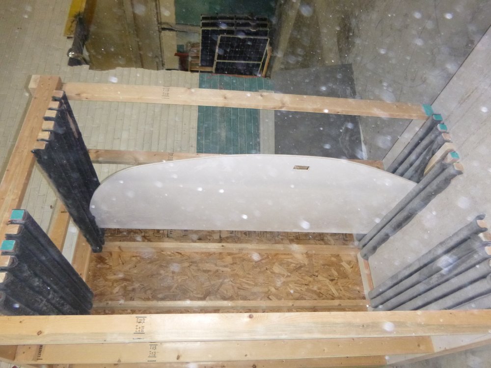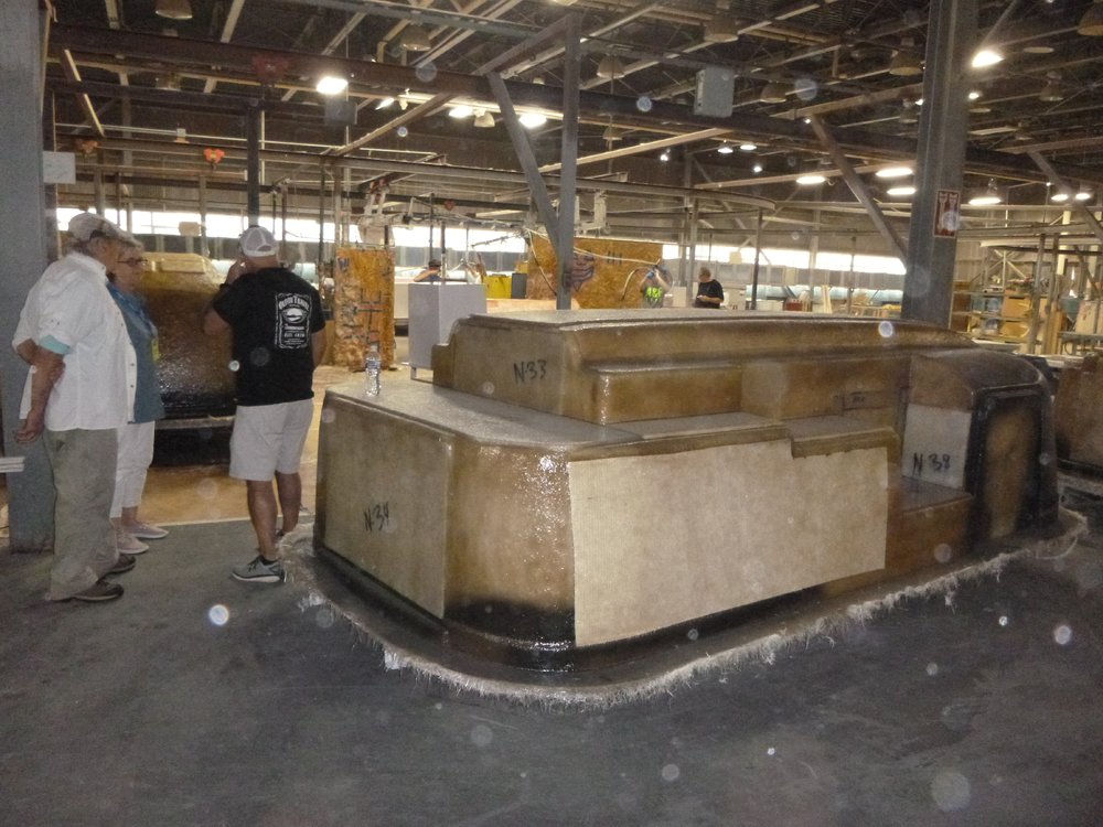 Picking up where we left off on the tour: backside of the cabinets - over 90% of the wood contained in an Elite II is right here. Bottom outside shell already on the frame. Quality control. Insulation is only the start of "stuff" going into the bottom. Getting there. lower bottom inside shell about to be placed inside the lower bottom outside shell.