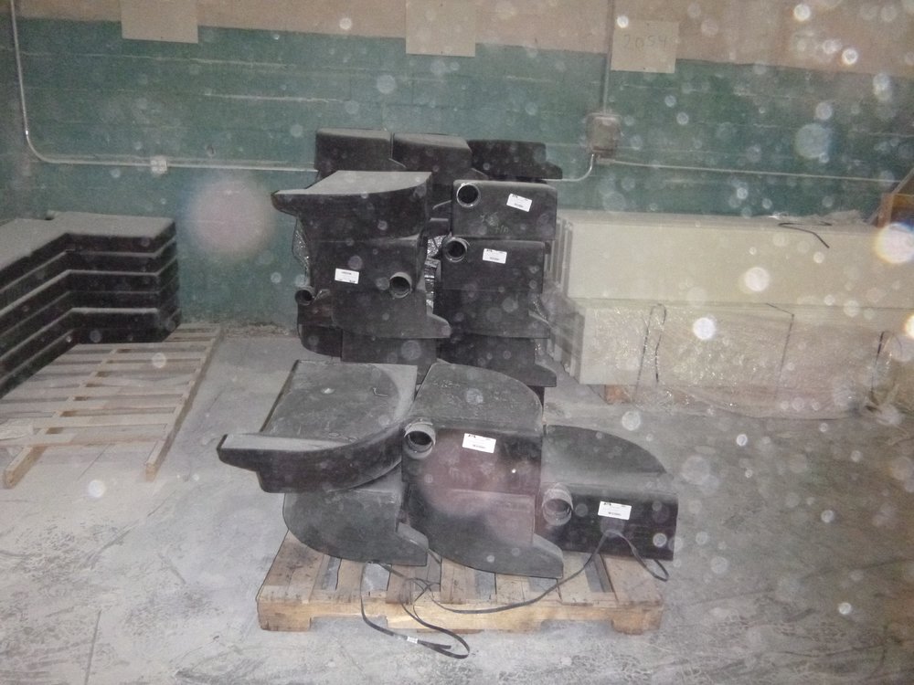 OK, for those that just can't get enough of this sort of stuff - upper inside shell before anything is cut out of it - fresh out of the mold. heaters, sinks, etc. all labeled and ready to go. Care for a cabinet door BEFORE it is cut out? Want to build your own frame? Note the thickness of the tongue parts. More parts looking for a home. Bill