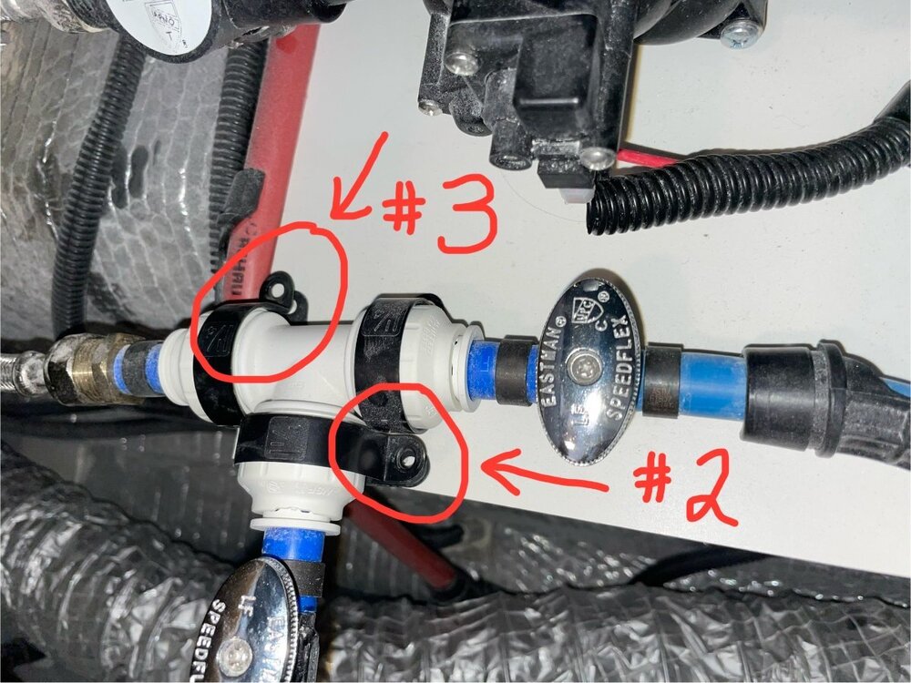 Can anyone help me identify the TYPE and SIZE of screws to anchor the lines around the Water Pump? I have found several of these are missing (see photos attached), and am loathe to take any out, because I'm not sure whether I can re-install them by hand OR whether they will stay in place, if mounted into the existing holes. I'm on the road (not at home) and haven't been able to find a hardware where I can pull in with my trailer in tow to get help with this. I don't have power tools, so am limited to using the standard screwdrivers. Does anyone have suggestions or solutions: - alternative mounting (screws of different size, addition of some kind of glue, or different system to hold them down) - how to size screws (in general) without removing them Is this standard (another thing to add to the list for pre-trip maintenance)? I have inquired at OTT mothership (I discovered them missing right after my maintenance service). They have not been able to assist with identifying the screws used, nor suggesting methods to reinstall or what to use in place of original anchors. EDIT: ** They did suggest that I could "try gorilla epoxy" to see if it would help (once I find the right size and type of screws to use, one would assume).**