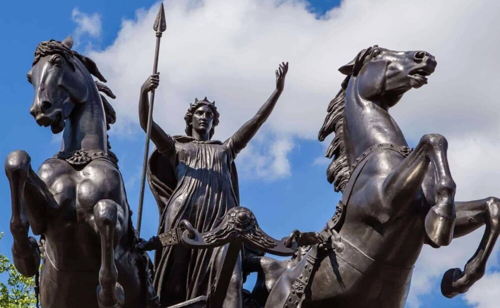 Boudicca -- the name given to a beloved dog of mine, because she fiercely stood her ground as a small pup against a much larger dog of mine (he weighed 110 pounds). Boudicca (or Boadicea) was Queen of the Iceni, a Celtic tribe in eastern Britain. She led a major uprising against Roman rule around 60 AD -- this was after the Romans ignored the King's will, seized the lands of the Iceni, and enslaved the people; personally, Boudicca was flogged and her daughters were abused by the Romans, so she sought vengeance. She brought several tribes together, they numbered tens of thousands, and they waged war. Though they killed 70,000 to 80,000 Romans, Boudicca's army ultimately lost due to lack of training, tactics and the advantage of terrain. Though her name is Boudicca, I usually refer to her as "my Ollie".