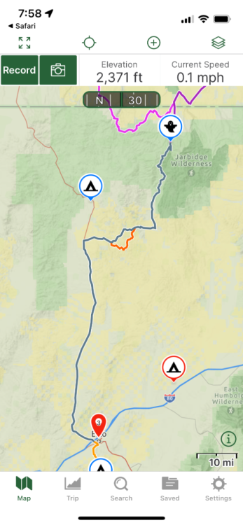 Woohoo, this is great…. 12 Routes and counting (one new Route each year). “Sometimes, it’s a relief—even a delight—to follow a trusted off-pavement route you know will go. Especially when you know it will go past breathtaking views, across challenging terrain, and to memorable watering holes. That’s why we’ve partnered with Backcountry Discovery Routes to bring you premier long-distance off-pavement routes with a leading navigation experience. Thanks to this new partnership, you can take any Backcountry Discovery Route (BDR) offline in the Gaia GPS app with just one click. We’re also honored to promote BDR’s mission of promoting responsible travel and fostering sustainable adventuring and economic growth.” Backcountry Discovery Routes Now Integrated with Gaia GPS: Get the Best Off-Pavement Routes with the Leading Navigation Experience This was super easy, following is part of the Nevada Route, I have driven this in my Land Cruiser, any vehicle can do the gravel USFS road sections, it is the back door route into Jarbidge ghost town, a way cool destination. The scenery is spectacular. The north “shaded” part of the route isn’t cleared of snow until about July 4. The waypoints are my own, you can choose to display your own info in the layers menu. John Davies Spokane wA