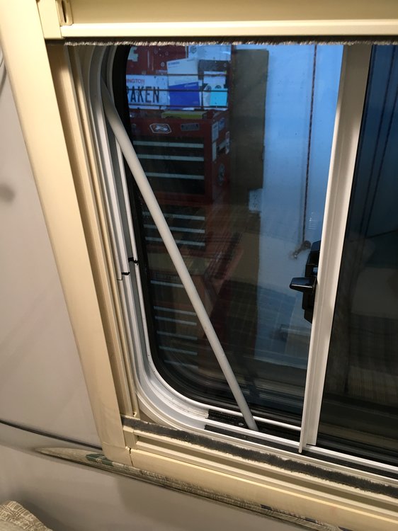 For those times when I leave the trailer but want to keep some ventilation flowing. I thought about a piece of round steel bar lying in the window track, but the end of the slot curves up and I think a hard push on the window would launch it clean out of there. Any ideas? I prefer No Drill, but that would be an option. I think most residential add-on window locks are a joke, but maybe there is one I haven!t seen that would work here.... Thanks, John Davies Spokane WA