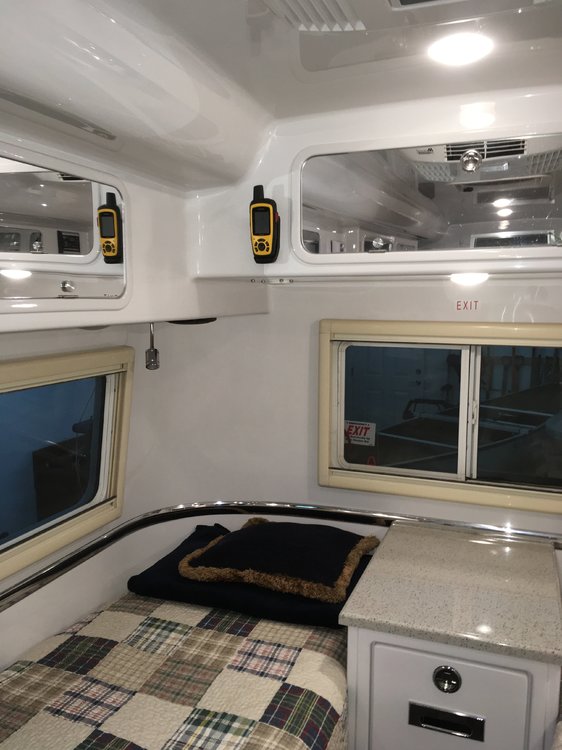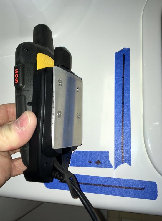 I spend a good amount of time traveling and camping way off the grid, where I have no cell signal. I have been using a SPOT ever since they came out, but I finally decided that I need more capability. The SPOT works great for continuous tracking while riding a motorcycle, but it is very crippled for sending help requests and the plan has gotten extremely expensive. I replaced it with a Garmin inReach SE+, so I can send and receive short text messages, send an SOS, and actually communicate real time with rescuers. It also links to the Garmin Earthmate app on my iPhone so I can use the phone to do stuff, such as access my Contacts. It provides great peace of mind and the basic plan is very affordable, and WAY less expensive than any sat phone. I am on the Freedom plan, and can suspend my monthly coverage if I want to , with no penalties. No mandatory annual subscription! I discovered that the inReach doesn't need to be outside, the fiberglass roof of the Ollie is completely transparent to its signals. I do think that the major appliances and pots and pans might get in the way, so I decided to install the powered mount at the back corner where it is easy to see and reach, and it can communicate from that location while it is charging. Normally a message will go out in under a minute, but sometimes it may be as long as ten. I needed clearance on top to lift the unit up and out of the cradle, and it needed to be positioned where I could route the USB charging cord into the upper rear compartment, so I could power a USB charger from the existing 12v round charger circuit... just to the left of the cabinet door frame looked ideal. I made an adapter plate from thick aluminum and screwed it in place using 6-32 stainless hardware: I taped a steel ruler to the frame, to act as an alignment jig. I was going to be spending hours looking at the mount from my bed and did not want it to be crooked! (Like my wonky rear window...) After adding 3M VHB tape, I stuck it in place: I took the factory installed Blue Sea USB low power charger from its location above the curbside bed, and wired it up: And spliced it into the existing 12 v system; That circuit stays hot all the time, and the inReach will charge whenever placed in the holder. It is easy to see from the galley or either bed (we sleep head to front) and it is easy to grab, and unsnaps from the mount with a flick of the safety catch. I have ordered an UNLIT USB high output dual charger for the empty hole over my bed. That will be a future thread. https://smile.amazon.com/gp/product/B01MRZ9ATL/ref=oh_aui_detailpage_o02_s00?ie=UTF8&psc=1 https://smile.amazon.com/gp/product/B01N2YKO3L/ref=oh_aui_detailpage_o02_s00?ie=UTF8&psc=1 John Davies Spokane WA