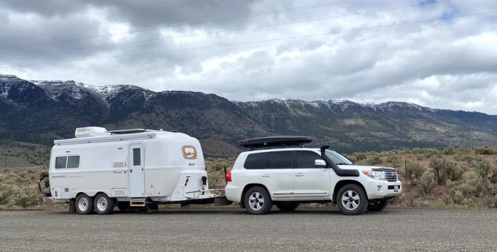 Three miles of dusty washboard 8% gravel road to get to Great Basin NP Baker Creek Campground….. No grease leaks! I seal the mating surface between the cap and the hub with a skim of clear RTV silicone sealant. The new bike rack works great: Obligatory Land Cruiser covered in dust pic, following almost 50 miles of dust up Snake Creek Canyon (south GBNP). I didn’t try to take the trailer on that one, John Davies Spokane WA