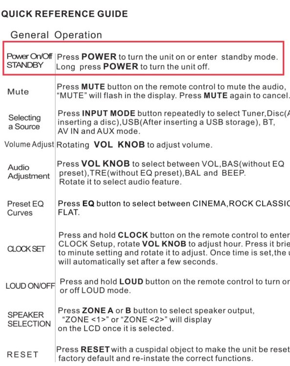 I posted this in another thread and from the positive reaction I decided to make it a stand alone one. For five camping seasons I have been hating the back lighting on my Furrion radio head. The normal mode is very bright, when I switched it OFF by pressing the POWER button It dimmed a little and showed the time. I have been pulling the circuit breaker for it sometimes….. until I finally read the @#$&* operating manual, a week ago. Normal ON: Short push STANDBY: Long push completely OFF: John Davies Spokane WA
