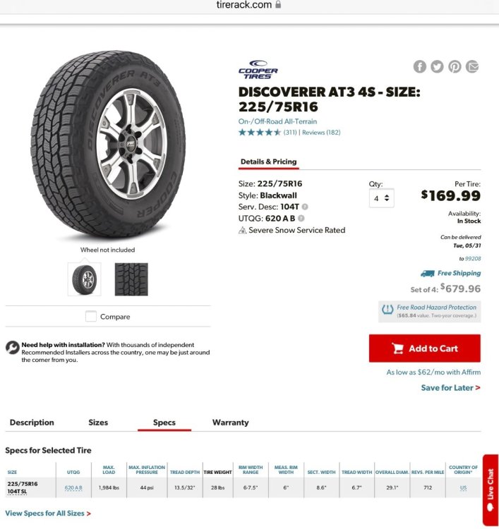 That formula may work as a rough estimate, but different tire brands and tire models will vary a little, sometimes more than a little, as does the tread depth. It is best to refer to the actual tire charts, Tire Rack is a good source. What tires are currently being used? As an example, these (VERY nice) AT3 4S tires are 29.1”. I have these on my Land Cruiser and really like them, I will mount a set on the Ollie eventually…. John Davies Spokane WA