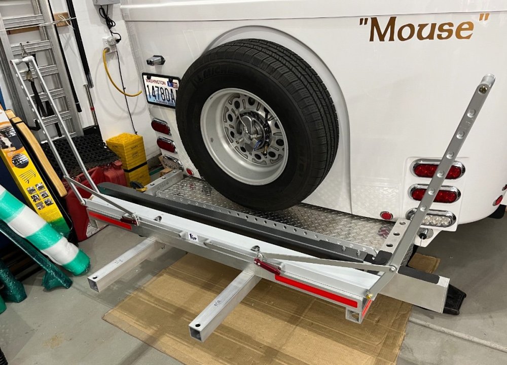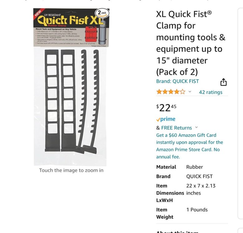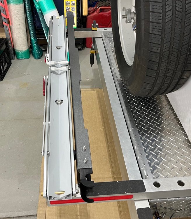 I bought a 1–Up roof rack and mounted it on my Ollie’s rear crossbar in place of the cargo basket. I also got a Super Duty Single for the Land Cruiser. That rack has a place to store the ramp, a couple of big studs on the rear support piece. The roof rack (tray) has no provision for attaching the ramp. The ramp is 2” x 4.5” x 48” steel channel. I do not want to drill any extra holes in it, the powder coat will be compromised. I prefer to mount it vertically, on edge, forward of the tray, so as to not hinder access to the sewer area. I wonder if one of these would work? I can fabricate a sort of cradle from aluminum angle and rubber, and just use a ratchet strap, but I was hoping for something premade and a little more elegant. Any ideas? If I had a pickup truck, the ramp could go in the bed. I do have a roof rack, but prefer not to carry the ramp up there. Thanks for any comments. I’ll post a thread about the rack system when I am done. I am still drilling, my shop is a mess ….😳 John Davies Spokane WA
