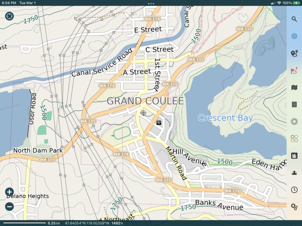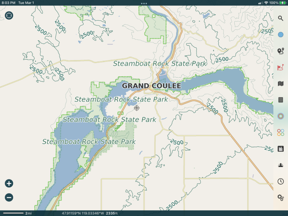 Try GAIA Premium, that lets you download all sorts of maps and layers for when the cell signal disappears. It has a fairly steep learning curve, but once you figure out the basics, it works great. Buy from their website to save 10% compared to the App Store. https://www.gaiagps.com/membership/?COUP=10OFFFIRSTYEAR Pocket Earth Pro, I think I mentioned that somewhere already, I love it for just routine “road atlas” type navigation, it gives great situational awareness for what the terrain is like beyond your truck’s OEM nav screen, or an aftermarket GPs with road maps, which might just show a line on a grey background…... Here are a couple of screen captures at different zoom levels. These are all downloaded maps, they work anywhere. John Davies Spokane WA
