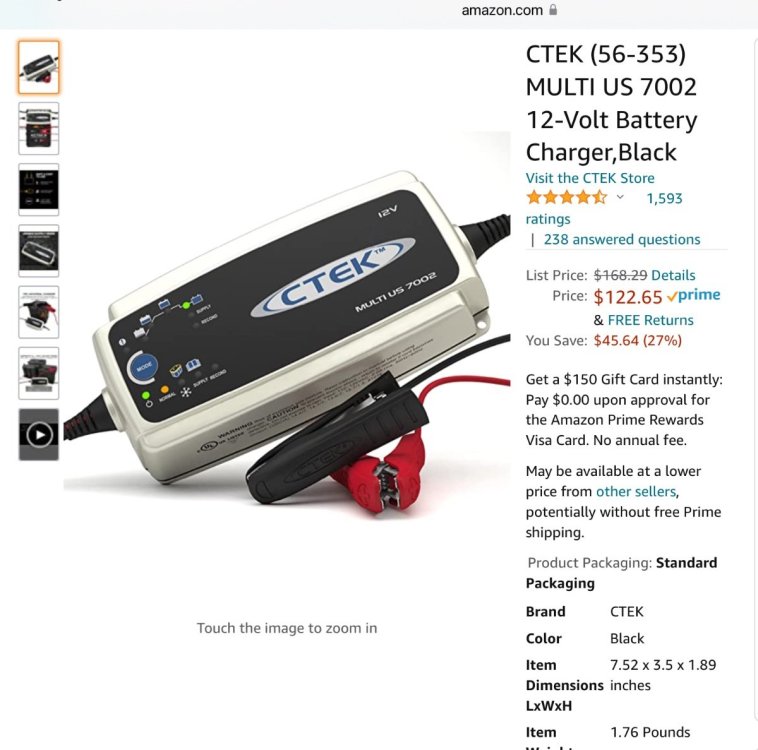 Just hook two of them to each other in series, using the Oliver jumper cables. Positive to negative. That will make each pair appear to be a single 12 volt battery, then use a 12 v AGM charger setting. Attach the charger leads to the appropriate terminals, the ones without the jumpers. Does that make sense? Charge that pair, and then the other pair. Or if you have shelf space, and if it can handle the weight, you could even connect them into the configuration that they have in the trailer, then it will appear as a single ginormous 12 volt battery. As long as you have a ginormous charger…. I would do them in pairs, for simplicity… plus I don’t have a shelf that will carry that load. Since you will have them out of the trailer, the next part will be really easy. In the spring, charge them fully, let them rest over night, and take them to a battery store like Batteries Plus Bulbs. Have them do a free load test, that is the ONLY way to determine the health of AGMs. They will come out to your vehicle and test them, you don’t even have to carry them inside. I would look for at least a 5 amp charger, that way you can bring it along on trips as a backup, in case your solar or onboard charger goes Tango Uniform. Or the battery in your truck. It could save your vacation…... I have one of these, 7 amps, and it has been great. I do not know about the NOLO ones, but do buy a quality brand. Cheap chargers are not reliable or precise. A good one will perform better and last a long time. This model will maintain a pair, but not four. It would charge them fully from a discharged state, but that could take a very long time. I would make sure yours are fully charged by the trailer before removing them for storage. CTEK charger They do make a 25 amp model but it is at least $320. What is your budget? John Davies Spokane WA -