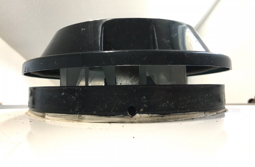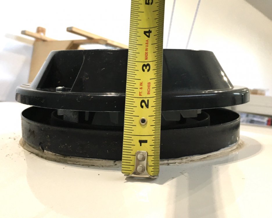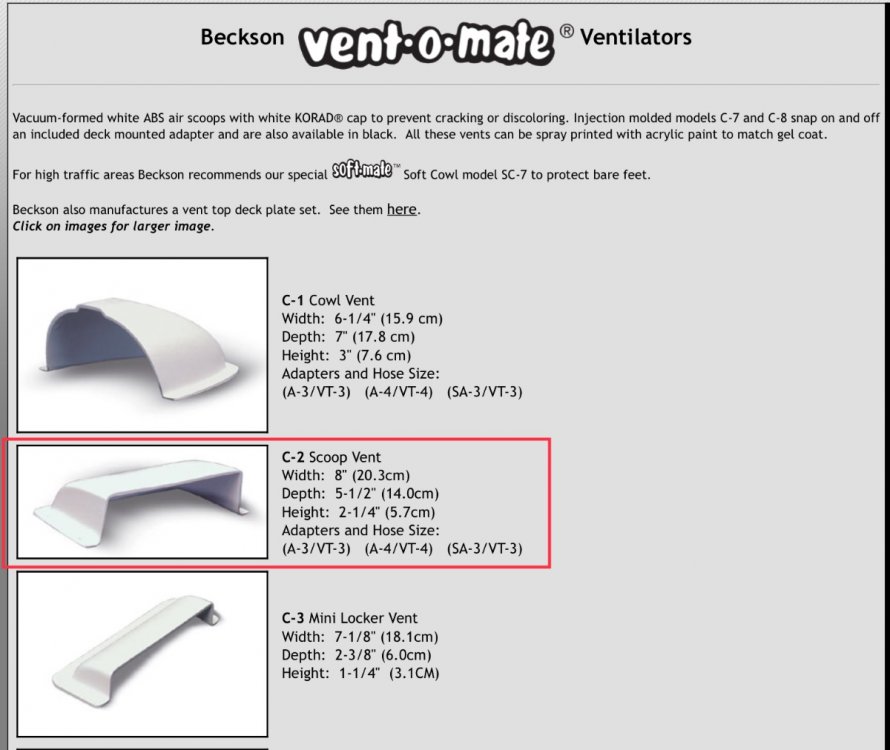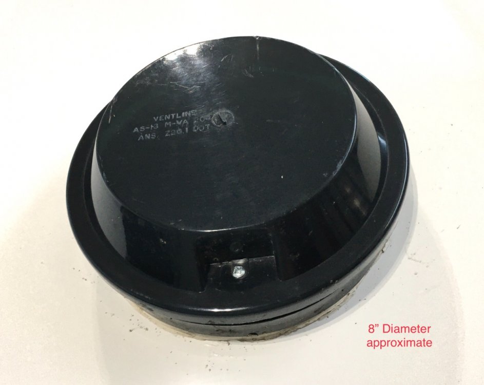 21. Adding pics..... I am not sure what is the current model, this is mine: I found a Beckson cowl vent that might work OK, but unfortunately the downhill slope (like that A Liner!) will cause it to fill with water or leaves. So maybe a simple piece of angle would be best.... Comments? John Davies Spokane WA