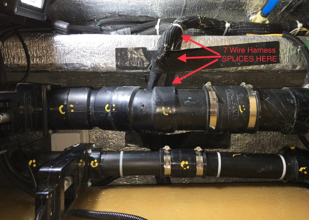 Here is a related thread, I installed a similar box up front under the jack: ... https://olivertraveltrailers.com/forums/topic/2688-how-to-junction-box-for-trailer-harness-repair-or-extend-the-harness/ This all came about because I wanted to install a ... Redarc DC to DC Battery Charger .... and I needed to know FOR SURE that the wires were big enough. 12 AWG is the absolute minimum according to Redarc, and bigger is always better, especially in an Ollie with a very long run back to the batteries. Here are the existing butt splices, half of them are absolutely buried under the sewer pipes. Time for a J-Box! So I cut all the splices, and dragged the ends up to where I could inspect the wires. Most were OK, but the white Ground wire was not. Somebody extended the front wire with a smaller sized one. Darn it! I bolted down the box next to the 120 VAC outlet. I spliced into the green and white running light wires and brought them up to the box via the bottom hole. The other wires come in from the left and right sides. I ran heavier 10 AWG black and white wires (power and ground) from the box back to the appropriate posts. So now the Redarc charger will not suffer from excessive voltage drop, and with the easy access, it will be very simple to troubleshoot any future 7 Wire Harness problems. The new splices are easy to ID because they have clear spiral wrap plastic, and they are secured to the inside wall using a 1" thick block of HDPE plastic, bonded with JB Weld directly over the small LED light. The placard goes inside the J Box using 3M double stick tape. Here is the placard, in Apple Pages format: Oliver Junction Box wiring placard Rear 7 pin.pages Note that I indicated where those marker light splices are - I hate not knowing! John Davies Spokane WA