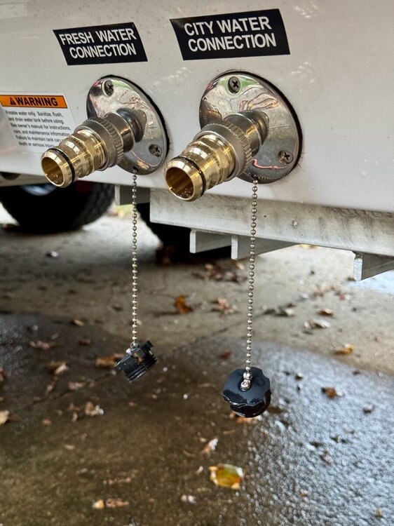 My Eley Quick Connects arrived today. Those are beastly things! David, I'm confused. How do the threaded black caps fit on the quick disconnects. They are much too small on mine. @Ronbrink Are the white caps that you shw in the above photo these? For some reason, I have them in my Amazon Oliver wish list, but I added them in late 2022, even before I had my trailer. I'm guessing someone linked them for some purpose, and this is all I can think of. https://www.amazon.com/gp/product/B00CEQ433S