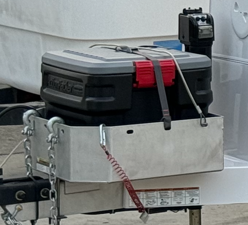 We have the Oliver front storage basket, and use a Rubbermaid Action Packer 24. There is extra space around this, as it doesn't completely fill the basket. We'll sometimes stuff wet tarps of carpets in there rather than inside the trailer or SUV. RollerCam, the best in the business, and made for continued use in the sun. They started out in the rafting industry, and expanded into other fields. https://www.rollercam.com We use one across the ActionPacker, and if leaving the trailer unattended for short times, we also use a bicycle cable lock.