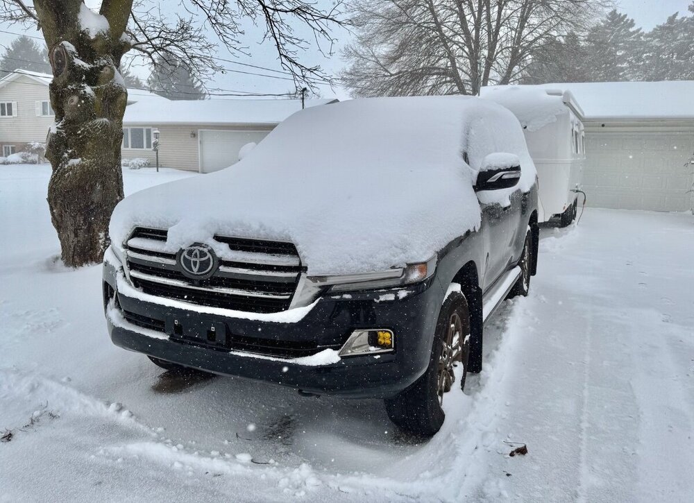 10 days to go. 4-6" of new snowovernight in the driveway, and 8" near the house and on the sidewalk. This is our first real accumulation of the year here in northern Ohio (only 0-1" prior.) The bad news is that it will not get above freezing before we leave next Monday, so I won't be able to de-winterize and fill the fresh tank before leaving. And we'll also probably be at a motel the two nights coming down instead of at Cracker Barrel. I'm sure glad we got a full hook up at the Eggs 'N S'mores Rally this year, so I can flush the lines and fill the tanks when we arrive at the rally! I'm going to have to find a truck wash to get the salt off of everything before getting to the rally. -