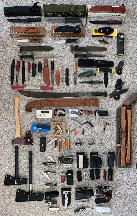 Did someone say knives? There may or may not be a couple dozen more since that photo, depending on if Deb is reading this thread or not. 😉 My favorite is the Benchmade Model 970; their licensed version of Ernest Emerson's CQC-7 from the early '90s. I was trying to get in one Emerson's "Buy a hand made CQC-6 for you, and one for a deployed serviceman", but he was years out, so offloaded some manufacturing to Benchmade. Benchmade late made their own CQC-7, but not near the same quality. These days, my carry knives are Opinel folders (simple, sharp, reliable, and cheap) and/or a Victorinox Swiss Army knife, with Leatherman in the truck, trailer, and around the house. That's the name of my Dropbox folder!🤣 There a fewer flashlights than knives, but not by much of a margin. Like @Steph and Dud B, I still have my old 5-cell Maglite and a Surefire 6D Classic, both with incandescent bulbs. But several years ago, I converted both to LED using Malkoff Devices conversion kits. My only other Surefire is a G2X shown below. Most of my flashlights are Olight, Fenix, NiteCore, and Streamlight, but there are a few no-name Amazon models scattered around in cars, the trailer, or home. Deb says that I am a serial hobbyist, but I disagree. I can do all concurrently! 🤣 -