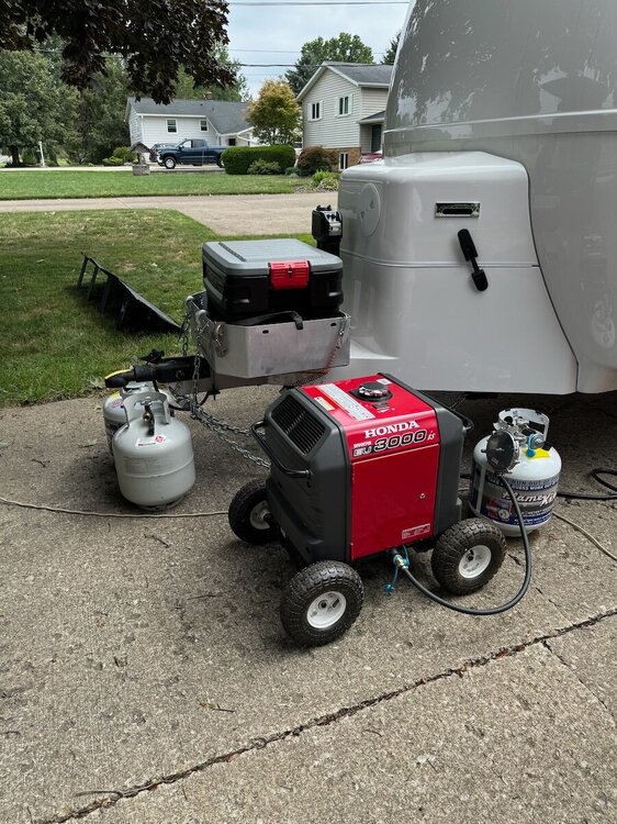 48 hours after severe weather passed through northern Ohio, we, like 2-300,000 other residents, are without power. @firstenergyhome is busting their behind, but last posted number was 3200 downed lines to repair. So we’re making do with a hodgepodge of alternatives. We trashed what didn’t fit in the Oliver fridge or the truck fridge. We moved all frozen food to the chest freezer in the garage, which is being powered by the Oliver’s lithium batteries. The truck fridge is powered by swapping two Bluetti solar generators charged with the 200W panel or the Oliver. And the Honda generators charging the Oliver, so it can power everything else! 🤪 I just returned from filling four propane bottles to ensure days of power. At least we have air conditioning a stove, and a hot shower in the Oliver. It could be worse, at 90 degrees or sub-freezing and facing broken pipes.