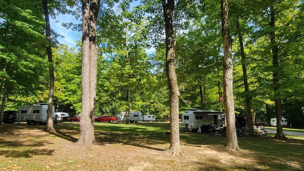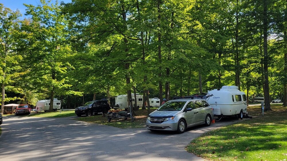 Three of the six Olivers in attendance at the 2024 Ohio Fall Annual Egg Rally, held at Cowan Lake State Park, in southwest Ohio. @Ollie-Haus @csevel Matt & Sue Jones, Deb and me, the folks with the micro-truck at the Oliver Rally, who I've *again* forgotten their name, and an unknown E1 that pulled in but was not found while riding around. Plus a couple who spent about an hour looking at our trailer and talking to Claudia, who have found a 2019 EII and are considering buying it. A fun time, and beautiful weather.