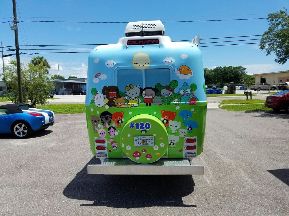 a bit of commentary, no need to respond, but this explanation is a bit therapeutic for me:) one of the unfortunate side effects of social media is the open vulnerability of posts/pictures to conflicting opinions. i was and still AM so excited to have had this wrap designed and installed for us. the wrap is a purely personal and custom work of love for myself and my family. i don't normally post to facebook and our account is actually a requirement in order to have a facebook business page (for our ice cream store). the posted album was an easy way to share the wrap with friends, who excitedly shared with their friends (including the oliver travel trailers' own facebook page)...but alas, one comment made me cry a bit inside, like a punch to the stomach: "oh! how sad (with an accompanying crying frowny emoticon)". i think the person thought i permanently disfigured my oliver??? well the answer to that thought (if it was thought?)is no... for anyone interested, the vinyl graphic idea originated with me seeing pictures of the 2 custom ollies painted black and red early on in production. i asked anita and the sales staff about options for color and they mentioned it was too costly an option to offer so instead i asked to leave the stripes off of the trailer and leave a blank slate. i did some research on after market options for color on the trailer, initially focusing on painting of fiberglass. very soon i found the option of vinyl wraps being a much more viable and reasonable solution. my first thought began with a simple different exterior color but as i continued with the research i discovered the infinite possibilities of a wrap, not just on the exterior walls but over the windows as well! fyi, the wrap is completely removable, partially or in entirety. the design we chose is completely personal and we love it, but i just wanted other oliver owners out there to know that other colors on your own oliver are possible:) this forum has been and continues to be a great venue for sharing and introducing ideas for completely novel and personal modifications and i thank everyone here for that! also side note: i'm researching the option of wrapping the interior window shades a bright white as an alternative to the spray paint. will let you guys know what i find out. thanks so much for letting me get this off my chest - yes ignoring other people's comments is an easy thing to say, but not so easy (for me personally) to do:) love you guys! tina