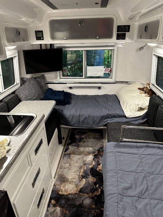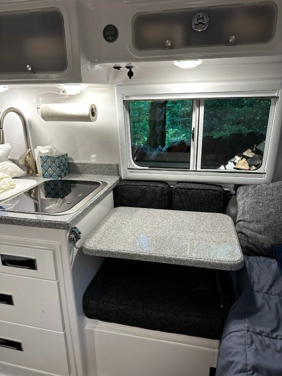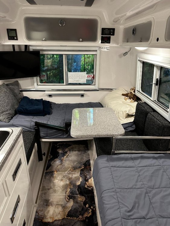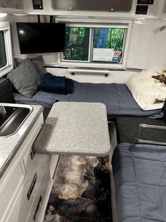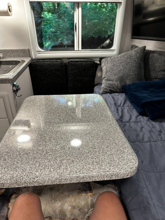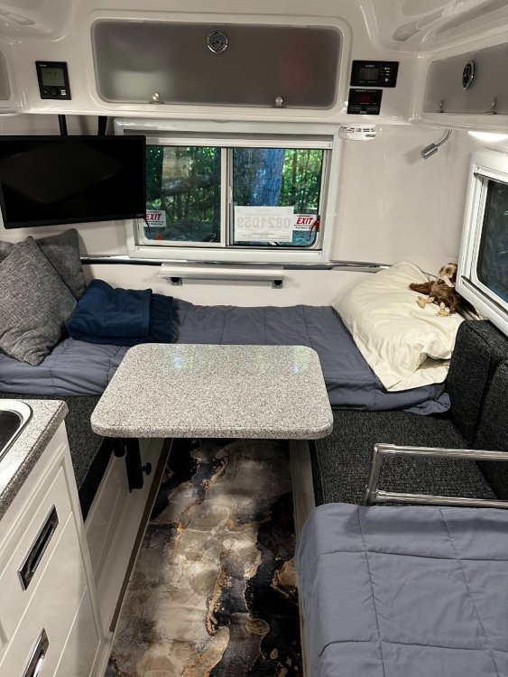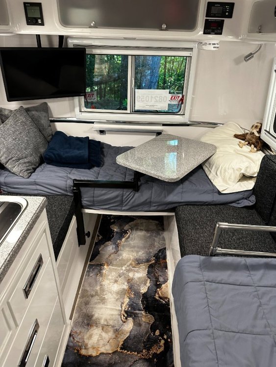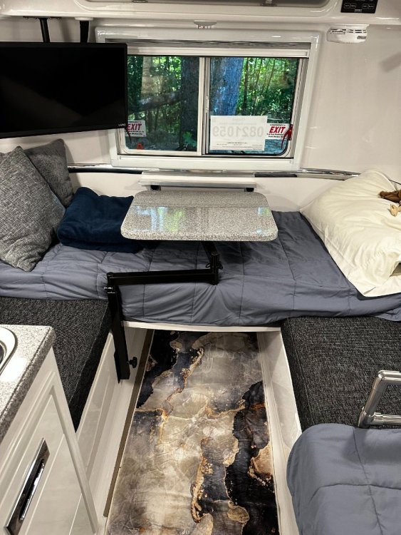 25. OK, I finally completed the modification with the lagun table and we are very happy with the results. We have ordered some backrest cushions from OTT to replace the split backrest cushions. We just returned from our first camping trip with Coddiwomple and really like this setup. My wife, Martha, sleeps on the back bed (28" wide) and I sleep on the side dinette bed (24" wide). David