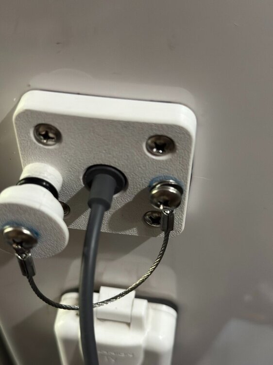 4. Going back to Geoff's original post on this thread, I did this (except for relay) and it works great but have been concerned about water penetration at the exterior socket when Starlink cable is plugged in. I have swapped mine out for a water-resistant component custom designed and made by Tom at Platypus3DDesigns in Mesa, AZ. Although the original socket worked great, it was not water-resistant so I asked Tom to create one that would replace the Furrion Mini TV/Satellite Inlet. Here is the link to his component. https://www.etsy.com/listing/4349330543/starlink-mini-dc-cable-pass-through It has 18 gauge wires attached and a magnet that holds the cap in. In addition, he adds another magnet on the side that can hold the cap when not inserted. I asked for a modification so I could add a lanyard. Tom drilled and threaded #8x32 holes for that. All screws and machine bolts were attached with blue Loctite. I was able to use the original Furrion gasket. I had to drill out the hole in the fiberglass a bit larger and I wrapped some butyl sealant around the barrel upon installation. Here is a link to the lanyards. https://www.amazon.com/dp/B0B4RXTKBH?ref=ppx_yo2ov_dt_b_fed_asin_title&th=1 To finish it off, I used a very small amount of dielectric grease on the cap seal and rubber fins on the Starlink cable end. Works great. David P.