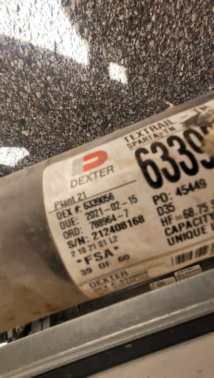 Well, pulled my 2021 LEII out of storage on Friday and was able to crawl around underneath it. Looks like I do have 3,500lb axles (D35) on mine and the four leaf springs. All the springs look in good shape with nice bends but, the trailer only has about 2,000 miles on it so far. So as others have mentioned, now the dilemma is putting two 2,000lb springs on a 3,500lb axle. I found a few custom spring makers in Minnesota so, looks like I may try to source some 1,750lb springs somewhere in the state. Details to follow... -