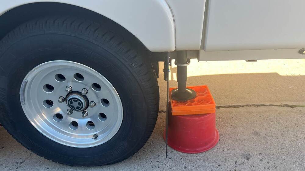 Time to upgrade to a F-250 and a long bed! 🤣 I carry 2 vs. 3 and I do not stack them when stored (easier after packed up to stick one here and the other one there, being the last items to stow). The picture I shared was actually the one time I stacked them! Ron @Ronbrink you sure have enough room in that 2500 van! Hang them from the ceiling, LOL! When I read the word "collapsible" in any marketing copy, I stop looking at that item immediately. The collapsible crate for example; I want a milk crate, steel preferred, but if plastic it must be heavy enough for me to turn it upside-down and stand on it, hold my weight safely! The collapsible crate would surely collapse at just the wrong time! Try to find a crate on Amazon that is NOT collapsible and you'll have to look long and hard. Collapsible is for kids driving compact cars, still living in apartments! 🤣 If I had a set of Flap Jacks, they would sit in the back of my truck ALWAYS in working position. The fact that you use these almost everyday while traveling, twice a day when dumping, I'm not taking the time to erect them and then fold them back to save a few cubic inches of storage space. I'll stick with two 8" Andersen Blocks and 16 of the 1"Legos. This combination works well for us. When you use both in combination you get the slip plane some of you worry about and can tailor the right height (more height up front, or more height needed on one side). I ALWAYS walk a full 360 after everything else is done. Even though I KNOW the 3 jacks are up, because I just removed them, habit is do the 360 inspection, eyeballing all 8 tires for correct shape and making sure there is nothing (not just blocks) under truck or trailer. 😎 -