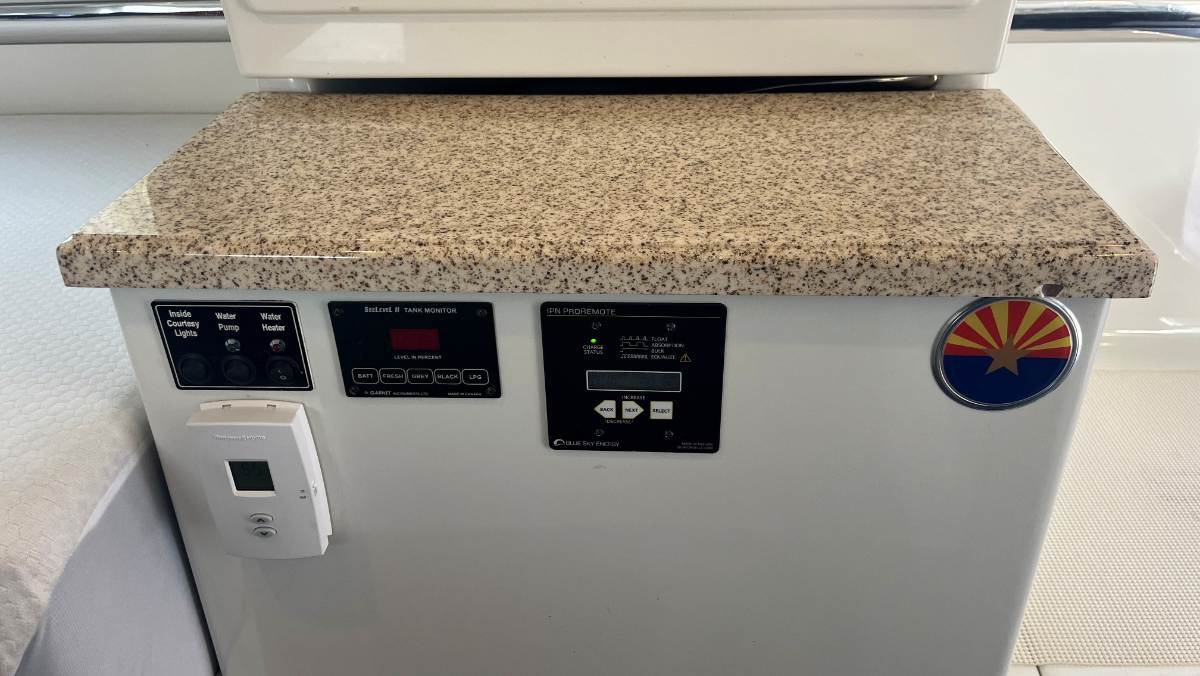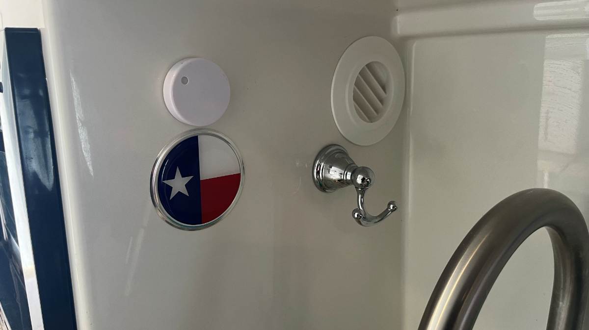 Found these cool decorative emblems that have helped with repairs and mods. Any emblem you like could help cover up where needed. Last year I upgraded the OEM inverter. It had a remote switch, requiring OTT to cut a 2 1/2" square hole in the fiberglass below the pantry shelf. Now we have an emblem of the Arizona state flag in that spot. Just recently, I removed our Dometic A/C and thermostat. I decided to relocate the new furnace-only thermostat under the pantry. That way we could set temp while lying in bed, nice! WOW, what a mess under the old thermostat! There was even a broke-off screw in the wall, like the installer tightened it so hard the head broke off! I used a Dremel to file down the steel screw flush. I mounted the new thermostat, drilling one 1/4" hole for the wires, and mounting using 3M VHB 4950. One small hole is all you need! ๐ This time we went with the flag of the great state of Texas! @Mike and Carol should like this! We lived in Texas for 9 years. It's where our son grew up, went to school, played sports and he stayed for college. We also have a Red-White & Blue theme for our Oliver, so the Lone Star state flag is perfect. Sure looks a lot better! These are really decent quality emblems, 3 3/8" diameter an 1/8" thick and reasonable cost. I chose the semi-flexible models. They have the US flag, the Thin Blue Line, Army, Navy, every one of the 50 state flags and many more: https://www.amazon.com/dp/B09GH2TC75/?th=1 https://www.amazon.com/dp/B09G8SWZ42/?th=1