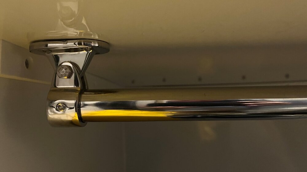 Anybody know what is the make/model of the Oliver closet rod? Please attach a link if you have one! Picture attached is what we have on our older hull, perhaps OTT changed this through the years. We want to install another closet rod further back to hold bath towels. If we could hang at least 2 clean bath towels back there it would help! The closet rod is about 24", though I did not measure. To put one behind I'd have to cut it down to 15". It would be nice to install the same model for a clean installation. Thanks!