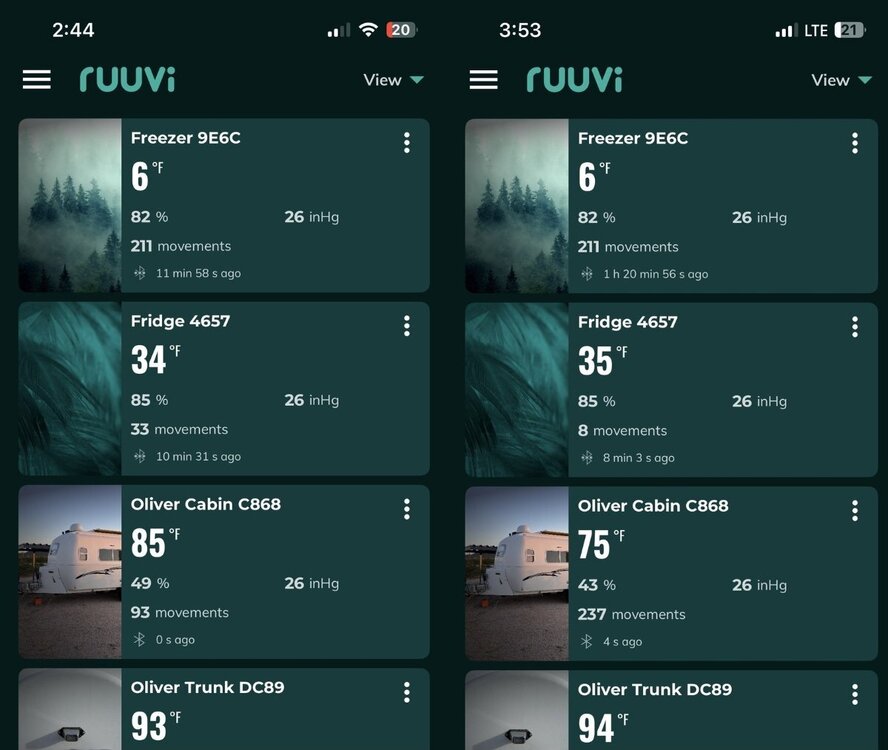 I really thought I was done with this thread, but the engineer in me thought of a new need today, given the current heatwave across the country, currently bothering our trip! Mike @rideadeuce gave me the idea and I was skeptical at first, like driving 8 hours cooling the Oliver while keeping your dogs in the trailer or something. I believed highway speeds would pull any cooling achieved right out of the trailer and down the road, like a boat leaving the wake behind it. On this account, I was wrong. 🤣 For the last of couple weeks on our road trip I have used our Victron inverter to not only run the fridge while driving (LP tanks off of course), but also to power the HWH. For the last few weeks we have arrived at our campsite at 100% SOC, fridge cooled and water hot upon arrival, by running our DC-to-DC and solar chargers running. So today it was to be in the mid 90s for the 3rd day, OMG in northern SD and WY! I turned off the breaker to the HWH and set the thermostat low on our (POS) Dometic P2! Got back in the truck and towed our Oliver 90 minutes to our destination. I still cannot believe the results! In 90 minutes our cabin temp dropped 10F. This usually takes 2-3 hours with the P2 at the campsite after connected to shore power. The only explanation I could think of is that while driving at highway speeds the A/C condenser gets cooled much more efficiently. We used 216Ah in this short 90 min out of our 600Ah total (36%). It was totally worth it! We arrived at camp at 4PM with a COOL cabin. Those of you who run an inverter and study your inverter and battery apps, check out and spend a bit of time with these screen-prints. You can see that outside it was 93F when we started at 2:30PM and 94F by 4 PM (Ruuvi sensors), while the interior temp dropped from 85F to 75F. Get me one of those inverter A/C units and we can likely do this using 100Ah! No, you cannot run it all day with dogs onboard. 🤣