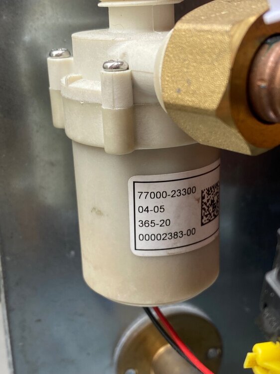 24. Hey Bob, If you’re pressed for time and it doesn’t re-set, then you might be better off trying to fix it yourself because Truma service could be inconvienient, untimely and expensive. I’d check for a degraded pump, or a debris jam thats causing excessive current draw as the error code indicates. The year warranty is probably expired so it could be worth a try. If the WH operates at all before the error code shuts it down, then listen for unusual pump noise and/or measure the current draw. It normally runs just long enough to fill the reserve tank with hot water, and a DC clamp-on amp probe can be used to measure the current from the front panel. AC/DC amp probes are readily available and you can use the wiring schematic in the Truma Manuel to identify the pump’s wires where they enter the control board in front. Just separate one of the pump wires from the bundle, and clamp the probe over it. The pump is rated to draw less than 2.5 amps when pumping. If the error code is preventing it from running, then you'll have to remove the WH and take the pump out for testing. It takes a little time but it’s not difficult. Drain it through the front flip down drain before disconnecting the plumbing. Disconnect the propane line and unplug the control wire from inside the unit, cut the DC power at the splice in the back by the water connections. Carefully use a heat gun, spray solvent such as Goo Be Gone, and plastic putty knife to break the outside seal, and have some butyl tape and outdoor caulking on hand to reinstall it. Once out, connect a standard 1/2" NPT residential faucet hose to the pump's intake, prime it, and put the other end in a bucket of water. Connect it to a 12V battery with jumper cables and use stiff wire or paper clips to connect to the pumps plug. It should pump with good pressure and <2.5 amps. If the pump is okay, then unfortunately you're back to control board issues and probably going to the Truma dealer for diagnostics. But you will only be out of your own time for trying. The pumps are pricey at around $250 when I last checked. Only buy one from a reputable dealer because I saw a fake site advertising them for $55. I hope this helps! Good luck! Geoff