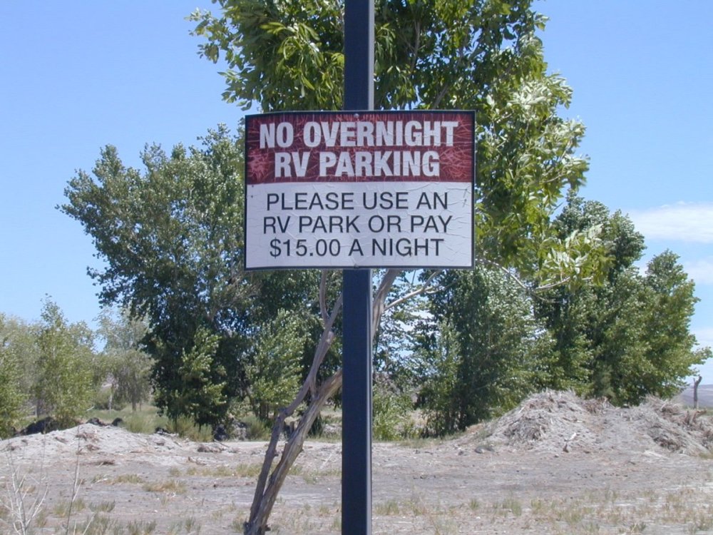 Excellent and interesting signs. This sign is posted in a small town in Nevada, across from a Casino and a Denny's where we spend the evening at the large gravel lot to the East. There is a RV Park with trees a bit north and this sign is to persuade 'campers' to squeeze into a small space, if possible. No facilities, truckers find it convenient, as well. The Double Cheeseburger and Fries is good for Breakfast, Lunch, Dinner or a 'snack' for those of us who burn the calories wandering the canyons, mesas, mountains and have a wrist GPS in the event we get lost. The GPS gives us direction to go, distance and if it were not for the canyon walls... the one mile short cut... is closer to 4 miles to access our camp.