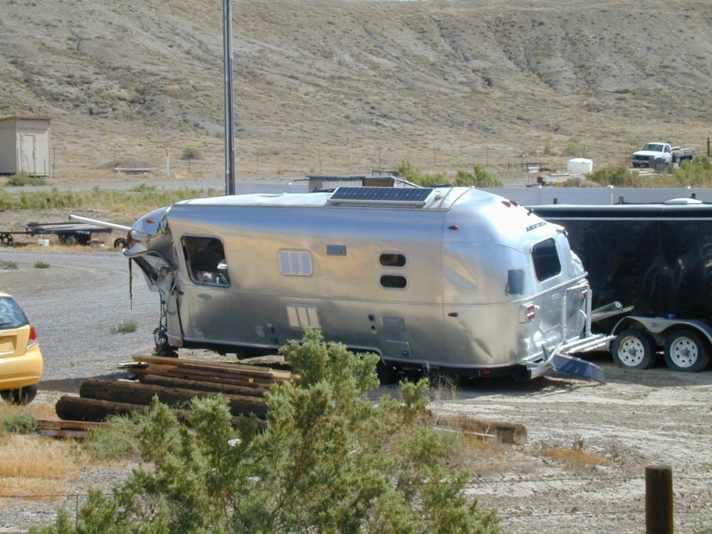 I know. You and a few others have a good Sense of Humor. A rare commodity today. Do you always fill your Scuba tanks with 'hot air' or laughing gas? Or just a rumor? ******* Now... seriously things WE DO when away from our trailer. Your TRAILER is the most valuable item left at a campsite. Remember that. It will cost $1,000's if a typical thief uses a crow bar for access into your trailer to take your hot dog buns and a six pack of beer. We leave our front door unlocked. We leave our outside storage door unlocked. We always retract our AWNING when no in or near the Trailer. A Secure Locking assembly on your Hitch. I like the ACE lock mechanism. If a thief damages any locking mechanism, it is going to cost you money to have it cut off and replace... but it did it job. Made stealing your Oliver and everything within. If it is ever recovered... it will be stripped of anything of value. At a Campground... lock it up. Others notice someone wandering with a spring steel nail remover in hand. This is the 99% most likely place for problems. (Yes... you can say you have never, ever... had a problem. Great. But you have not Rolled Over your Oliver, either. Takes a good alert experienced driver... 🙂 Between Grand Junction, Colorado and Ouray, Colorado is this roll over Airstream. The highway coming into Ouray from the South... is a real hum dinger. -