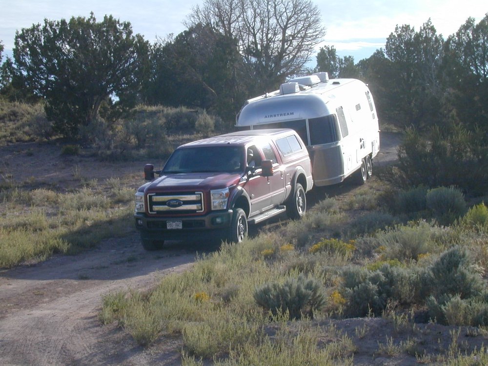 Great Boondocking... sort of... experiences to offer. If everything else fails, a compass and good map can get you started in the right direction. We were a bit disappointed with Canyon de Chelly. After Chaco Canyon... and Mesa Verde it is tough to stand out. Several great 'Indian Sites' in New Mexico worth visiting. Also... so many Pit Houses at some Boondocking locations in New Mexico, you are walking among ruins and may not notice you are in the National Forest and not a National Park! This one photo is a bit tight for an 8 foot wide trailer. An Oliver would have no problem at all.